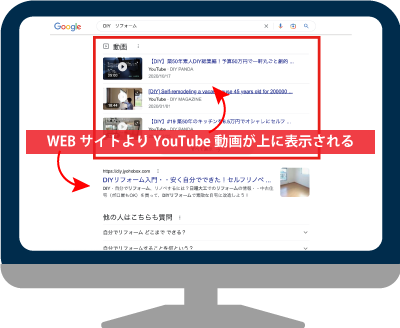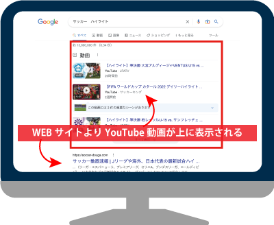 動画以外にも画像、地図、ニュースやショッピングなどがユーザーの目的に合わせてWEBページより上位表示されます。