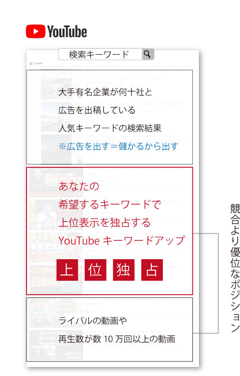 私たちのサービス、YoutubeJackは、あなたのビジネスを輝かせ、商圏での競争に勝ち抜くための特別な力を持っています。なぜなら、あなたが希望するキーワードをYouTubeで上位表示させ、集客力を最大限に引き出すからです。